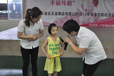 “媽媽,多謝你,我知道你平時(shí)工作非常辛苦,但回到家仍然細(xì)心照顧我,陪伴著我,祝你母親節(jié)快樂!”一段真摯由衷的感言,感動(dòng)了在場所有職工媽媽,溫馨淚水蕩漾在眼中。2015年5月9日,廣東金達(dá)為表達(dá)對在職母親的愛與感激之情,舉辦主題為“幸福金達(dá)、幸福母親”聯(lián)歡晚會,邀請職工的子女一同參與,活動(dòng)安排多個(gè)親子的互動(dòng)環(huán)節(jié),希望值母親節(jié)之際,拉近母親與子女間的距離,透過活動(dòng),把愛與思念說出來。
